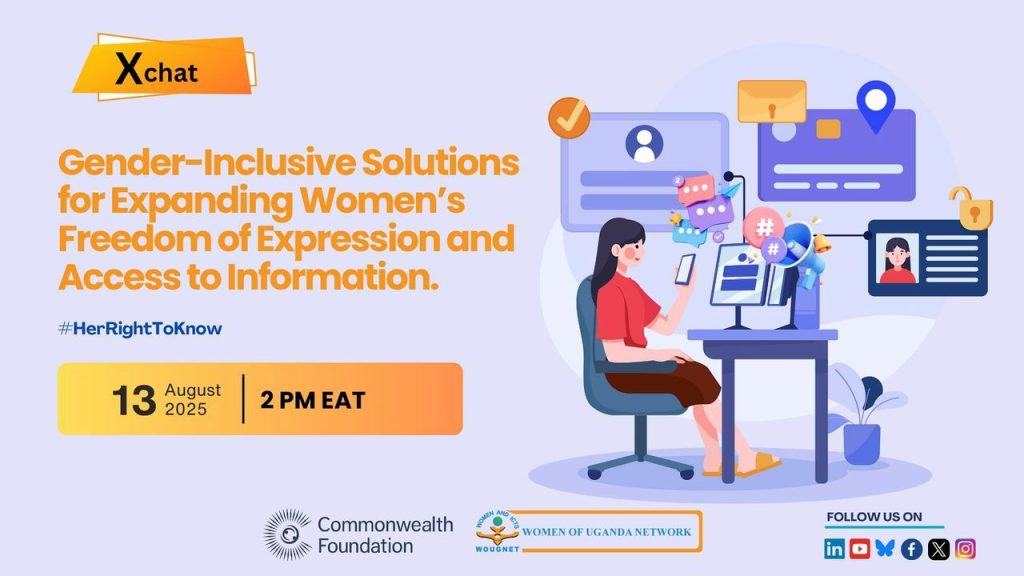 On Wednesday, 13th August 2025, digital rights advocates, gender activists, and civic space defenders convened online under the hashtag #HerRightToKnow for a vibrant Twitter (X) conversation hosted by Women of Uganda Network (WOUGNET) in with support from the Commonwealth Foundation. The dialogue centered on “Gender-Inclusive Solutions for Expanding Women’s Freedom of Expression and Access to Information.”